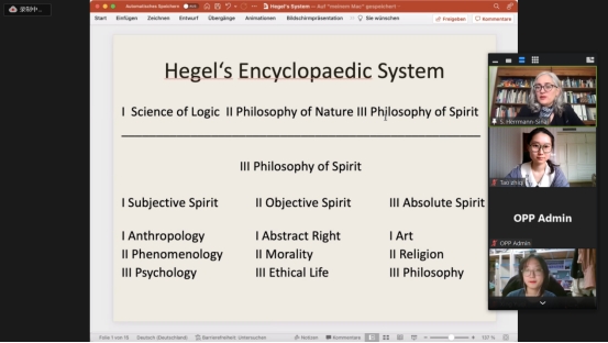 This 8-week online programme is really a memorable and fabulous experience for me. In the programme I’ve taken 4 lectures, 3 sessions, and 8 tutorials. It makes me know more about German classical philosophy, especially Kants and Hegels. In tutorials I need to take initiative to express and share my opinions, instead of just listening to what the tutor said and comprehending them. This indeed urges me to read core reading and supplementary reading materials before (and search more information almost always), take notes, identify the thesis and the argument, think more about my own view, do more critical reflections, try to give some objections or defend the philosophers’ arguments, express and discuss to engage in these tutorials. These do help me so much, my ability of reading, listening, writing and speaking have been improved a lot. Moreover, I’ve experienced this special teaching form and the characteristics of the western education system. What’s more, it also develops and improves my skills in analysing and making philosophical arguments. During the programme, I handed in two essays, and I’ve already received the feedback from Dr Susanne, my tutor, this let me have a better understanding of English academic writing. Additionally, it arouses my interests of German classical philosophy.