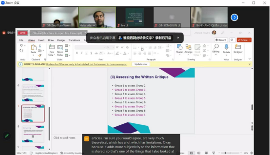 In the 2022 "Jilin University-Cambridge Academic Project", I gained a lot for more than two month. I not only have a better understanding of the paper report, but also directly improve my English level. In addition, I have further mastered academic thinking and writing skills, which will be of great help to my future research in related fields In addition, I learned about doing research and how to cultivate our students' critical thinking and reading methods.