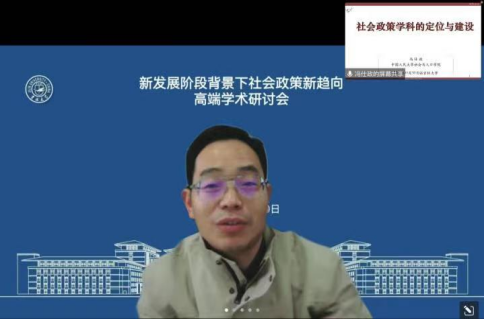 社会政策研究团队主办的“新发展阶段背景下社会政策新趋向”内部研讨会在线上如期举行。北京大学社会学系王思斌教授、中国农业大学人文与发展学院院长叶敬忠教授、南京大学政府管理学院林闽钢教授、中国人民大学社会与人口学院冯仕政教授、中山大学政治与公共事务管理学院岳经纶教授、中国人民大学社会与人口学院李迎生教授、北京大学社会学系熊跃根教授、《新华文摘》杂志社副社长刘仲翔博士等人受邀参加。