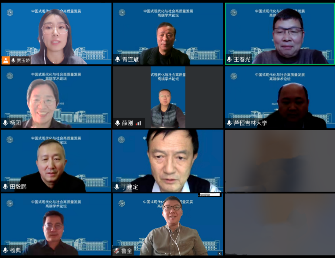 ,“人类文明新形态视域下社会现代化理论与实践”创新团队主办,中国社会学会社会治理专业委员会协办的“中国式现代化与社会高质量发展”学术研讨会依托腾讯会议平台在线上如期举行。中国社会科学院大学、中国社会科学院社会学研究所杨团教授,中共中央党校(国家行政学院)青连斌教授,华中科技大学丁建定教授,中国社会科学院社会学研究所王春光教授,中国社会科学院社会学研究所杨典教授,中国人民大学鲁全教授、中国社会科学杂志社薛刚副编审,以及黄色视频