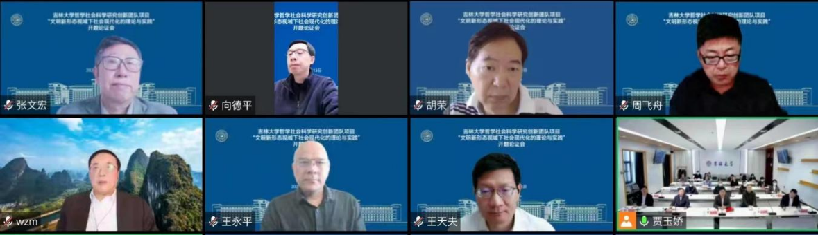 随后,项目组专家对项目设计与推进情况进行了研讨。与会专家充分肯定、一致认为该项目具有重要的学术研究价值和宽广的学术创新空间。清华大学王天夫教授表示,本项目研究前期准备充足,为后期进一步论证预留了时间,提出人类文明新形态视域下社会现代化的研究维度,走在了国内学术研究的前端;华中科技大学向德平教授表示,该项目将教学、科研、实践、育人结合在一起,是非常值得期待和提倡的举措;中共中央党校吴忠民教授肯定了该项目的学术前沿性和重大现实意义,同时建议发展社会学的推进,应当在关注全世界现代化新趋向的基础上,对现代化保持乐观态度的同时,不能回避现代化的短板和隐患,并指出应当更加集中和明确项目课题的焦点;北京大学周飞舟教授表示,该项目的论述十分切实,建议课题进行更进一步的凝练与探索,“为人之所不能为”;厦门大学胡荣教授期待吉大同仁在阐释中国式现代化理论上能有更大的突破;《社会科学战线》副主编王永平研究员表示对项目团队的理论创新充满期待;南开大学张文宏教授表示,该项目团队是一个人才培养、社会服务、文化传承的优秀实践平台,项目研究探索过程中应辨析好社会政策与公共政策的关系,把握好区位研究优势,并和东北老工业基地振兴课题相结合。
