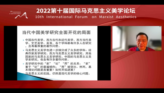 浙江大学传媒与国际文化学院、马克思主义美学专业委员会主任委员王杰教授介绍了国际马克思主义美学论坛的发展历程,对当代马克思主义美学研究提出了自己的思考,认为在今天这样一个时代,马克思主义美学依然具有强大的生命力,同时也要倾听世界美学的声音,在与世界美学的对话中实现自身的发展。