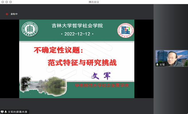 其次,文军教授对不确定性概念的发展进行介绍,并分别从本体论、认识论、方法论及价值论层面出发,深入解读“不确定性”概念所具备的多重意涵及其形态。文教授强调,“不确定性”代表着一种方法论上的新思维方式与研究范式。社会科学研究者在从事研究的过程中,要意识到研究立场与研究对象的双重不确定性,从而力图做到“在不确定性中认识和把握不确定性”。
