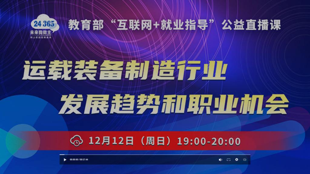 2021年12月12日晚,教育部“互联网+就业指导”公益直播课准时开播,本期课程邀请到了中国商飞人力资源部副部长,教育部装备制造行业就指委委员徐春夏、比亚迪股份有限公司人力资源处总经理助理,教育部装备制造行业就指委委员荀猛授课,专家围绕运载装备制造行业的发展趋势和职业机会作了精彩分享,并就同学们的疑问进行了回答。学院研究生会联络培训部组织同学们进行了线上观看学习。