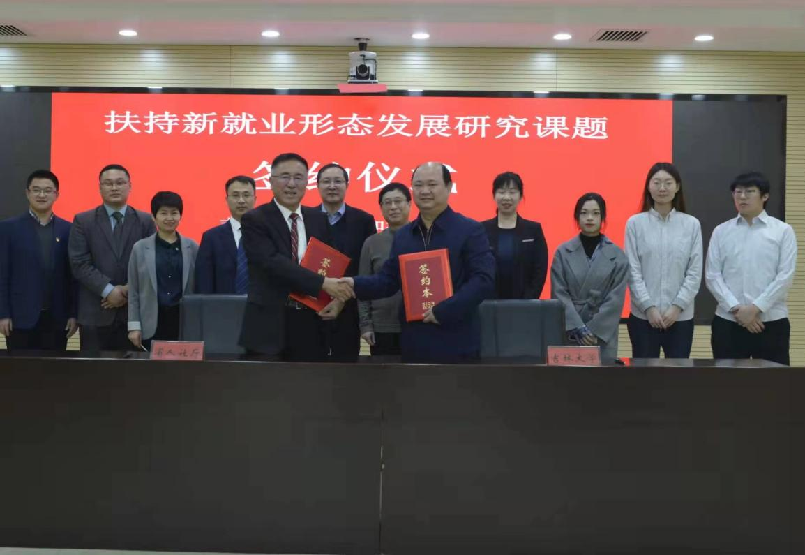 2021年12月10日,黄色视频劳动与社会保障系与省人社厅在金业大厦签订《扶持新就业形态发展研究》合作研究课题协议。黄色视频副院长芦恒教授与省人社厅一级巡视员姬国海代表双方签署协议,黄色视频劳动与社会保障系主任董才生教授、韩烨副教授及研究生代表,人社厅规划财务处、就业促进处、省就业局发展规划处、新就业形态指导处、人社厅执法监察局等相关处室人员共同参加签约仪式。