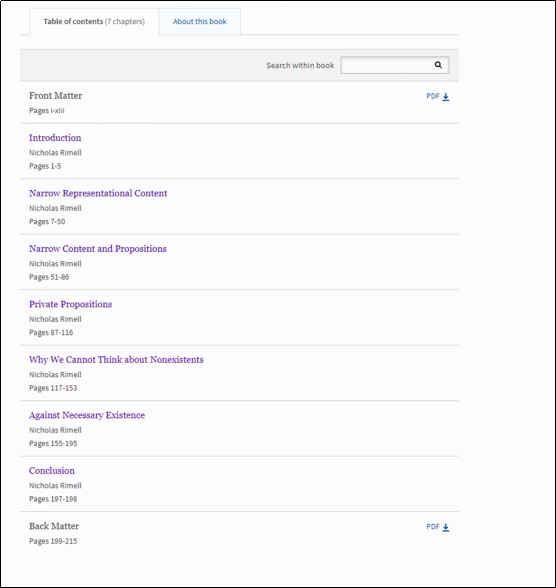 第四章,私人命题。传统信仰学说的第一个信条有一个额外的后果:我们的自我中心信仰是对私人命题的态度。在为这一论点辩护时,Rimell反驳了使自我中心信念的特殊性有意义的标准方式,即诉诸于我们接受第三人称命题的假象。