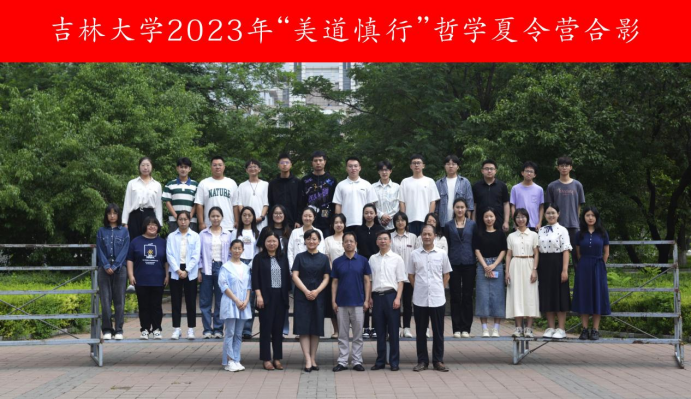 领导、哲学系教师代表与本届夏令营的营员们合影留念。