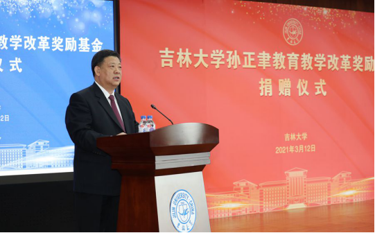 捐赠仪式由校党委副书记、副校长王利锋主持。王利锋强调,姜治莹书记的讲话对新时代的吉大人如何更好地为师为学、发扬优秀的师德师风、承担立德树人使命提出了殷切希望,为全校深入推进师德师风建设、深化教育教学改革、全面提高人才培养质量等方面指明了方向,要按照姜治莹书记的指示要求,切实把孙正聿老师的故事讲述好、宣传好,把孙正聿老师捐赠的基金管理好、使用好,以实际行动和工作业绩回馈大师的教育情怀,感恩大师的爱心善举。