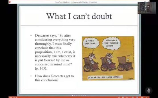 第五部分讲授了The fault lines of the debate。这部分Duncan主要讨论了二元论者与许多物理主义者在方法论上的一个重要分歧。一般来说,支持二元论的论点需要诉诸于我们的内省,而支持物理主义的论点常常是第三人称的、实证的主张。二元论者承认内省和实证方法的合法性,但一些物理主义者则质疑诉诸内省的合法性。知识论者Alvin Goldman在他的著作《Science, Publicity, and Consciousness》中提出了诉诸内省是否合法的问题,而且论证了它的合法性。Duncan在此对Goldman的论证进行了清晰、有益的概述与分析。Duncan在讲座的最后引入了一个许多学生特别要求他讨论的话题:关于(视觉)经验的形而上学争论,Duncan介绍并简要评价了朴素实在论、感觉材料理论、内在心智状态观及表征论对这个问题的不同观点。讲座在热烈的讨论中结束。