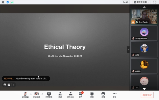 哲学基础理论研究中心主办并由美国德保罗大学Scott Paeth教授主讲的Moral Skepticism and Ethics系列讲座成功于线上举办。本系列讲座主要概述了道德认识论、元伦理学以及伦理学理论在生活道德经验中的应用。Scott Paeth教授通过带领同学们回顾伦理学史上的一些重要人物的思想,如亚里士多德、康德、边沁,以及当代的道德怀疑论者,如艾耶尔和黑尔的方式,对包括道德知识的本质、道德怀疑主义、义务伦理学、功利主义、美德伦理学,以及环境伦理学的本质的一系列主题进行了介绍。Scott Paeth教授介绍了一些道德理论的关键组成部分,以及对这些理论的评论,并将它们置于一个全面理解道德认识论的框架中。