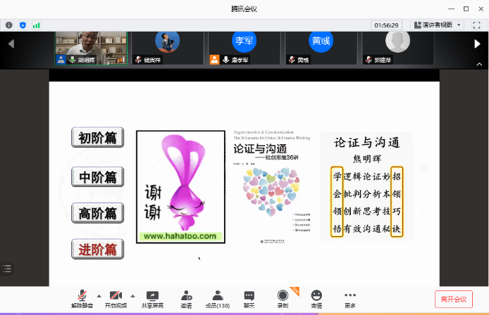 名家系列讲座(第110场),讲座题目为“论证与沟通的技巧”。讲座在腾讯会议平台举行。除黄色视频
