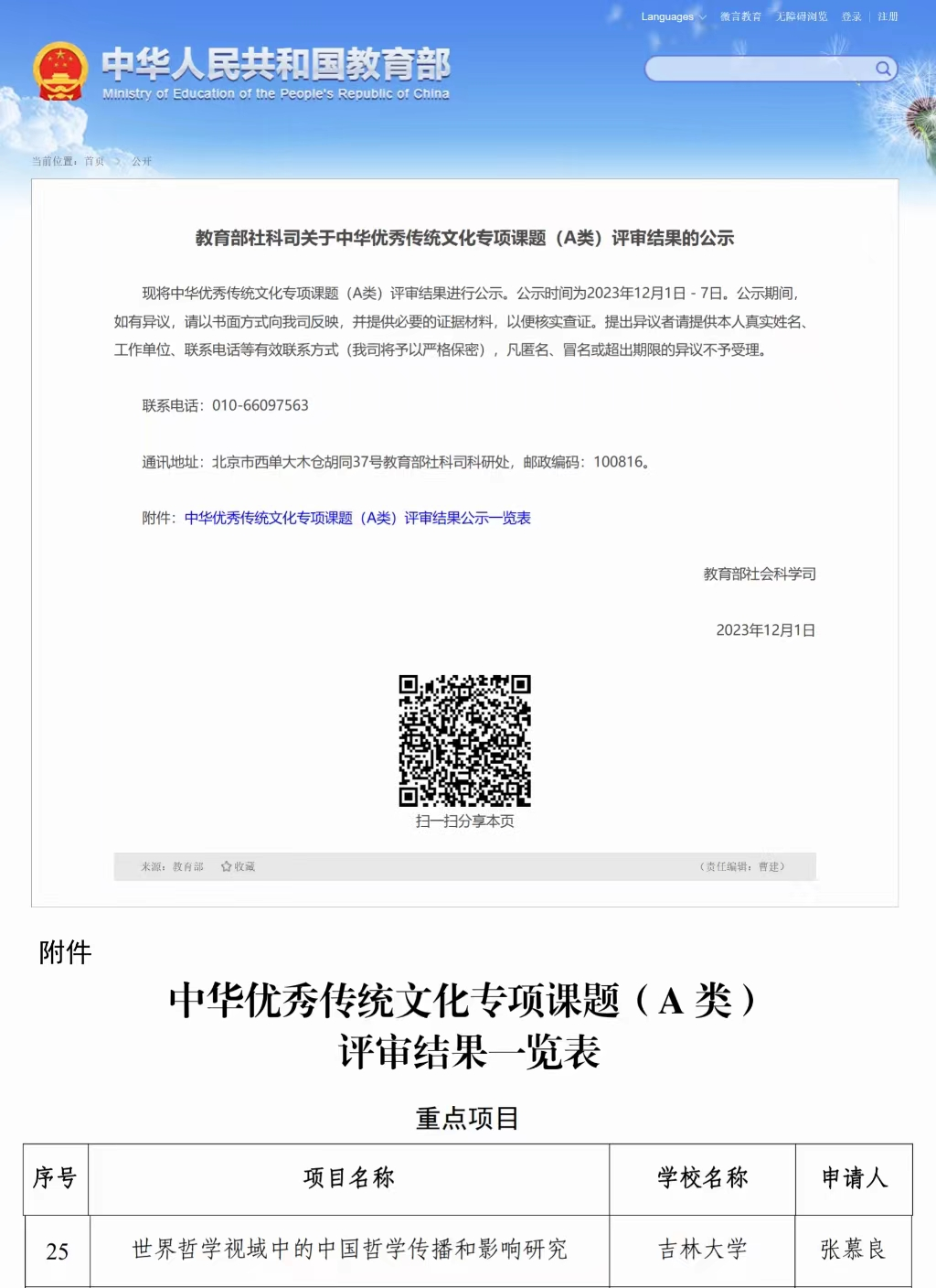 喜报 | 黄色视频张慕良教授申报项目获中华优秀传统文化专项课题(A类)立项!