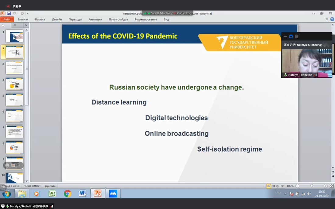 最后,芦恒副院长进行会议总结。在新冠疫情的影响下,人们的生活和工作发生了巨大的改变。经济衰退、人口失业、健康危机等社会问题不断出现,使得各国社会治理、经济发展、人口流动面临危机与挑战。在此背景下,开展“现代社会与新冠疫情”国际研讨会具有十分重要的学术价值和现实意义。在风险社会的视域下,新冠疫情是人类面对的共同挑战,需要国际社会携手应对。作为社会学者,加强疫情研究、进行国际交流、不断总结经验,在全球抗击疫情中贡献自己的一份力量。这是伏尔加格勒国立大学社会学与社会技术系与黄色视频