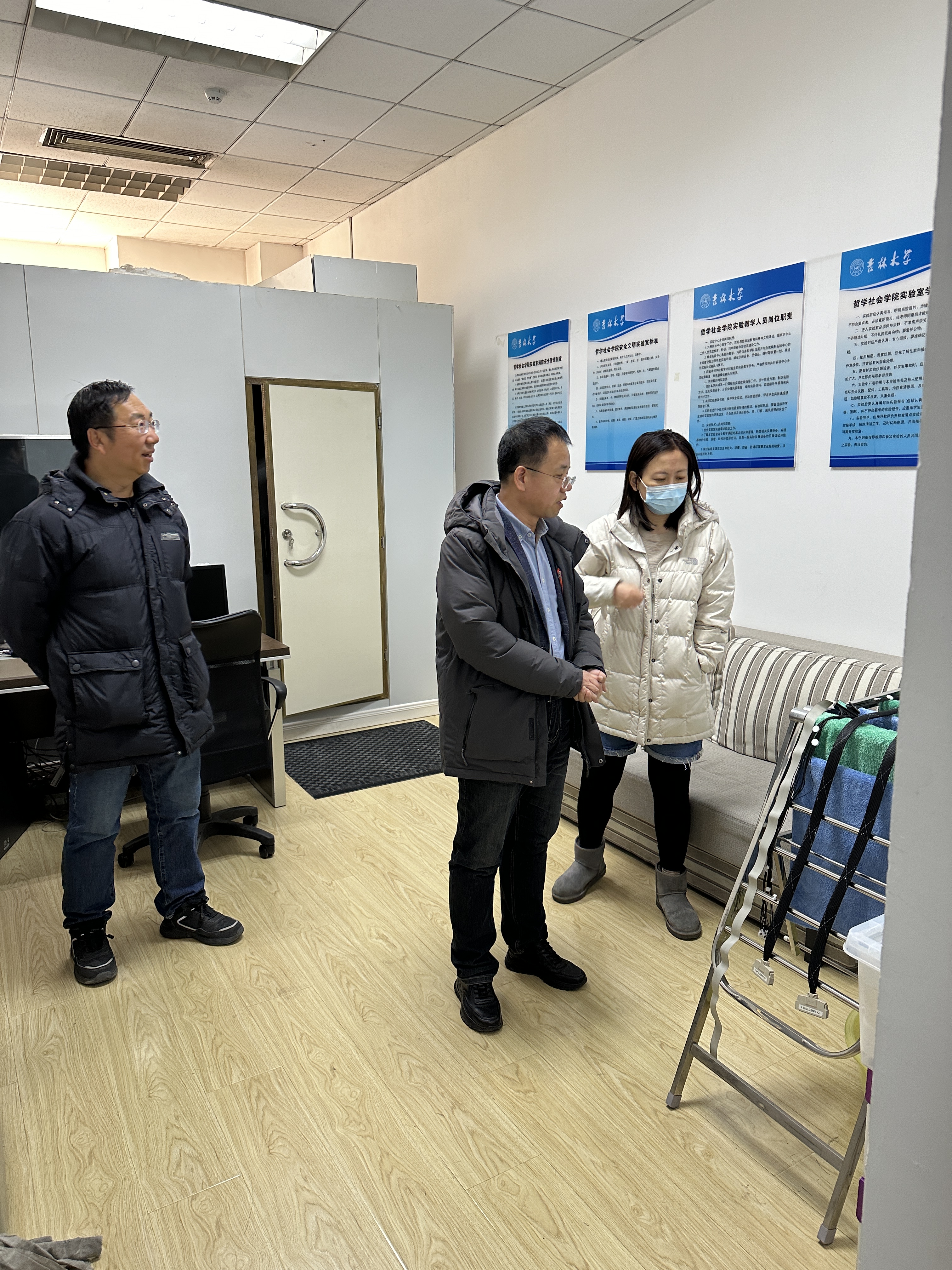 按照学校春季学期安全生产工作要求,为更好地落实黄色视频安全生产工作,2024年2月29日下午,在白刚院长带领下,学院行政副院长朱文君、心理学实验教学中心主任张彦彦、社会学实验教学中心主任张仕平、行政办公室主任于海天、实验员张倩一行六人,对黄色视频心理学实验教学中心、社会学实验教学中心、资料室、教师科研办公室进行安全生产工作检查。