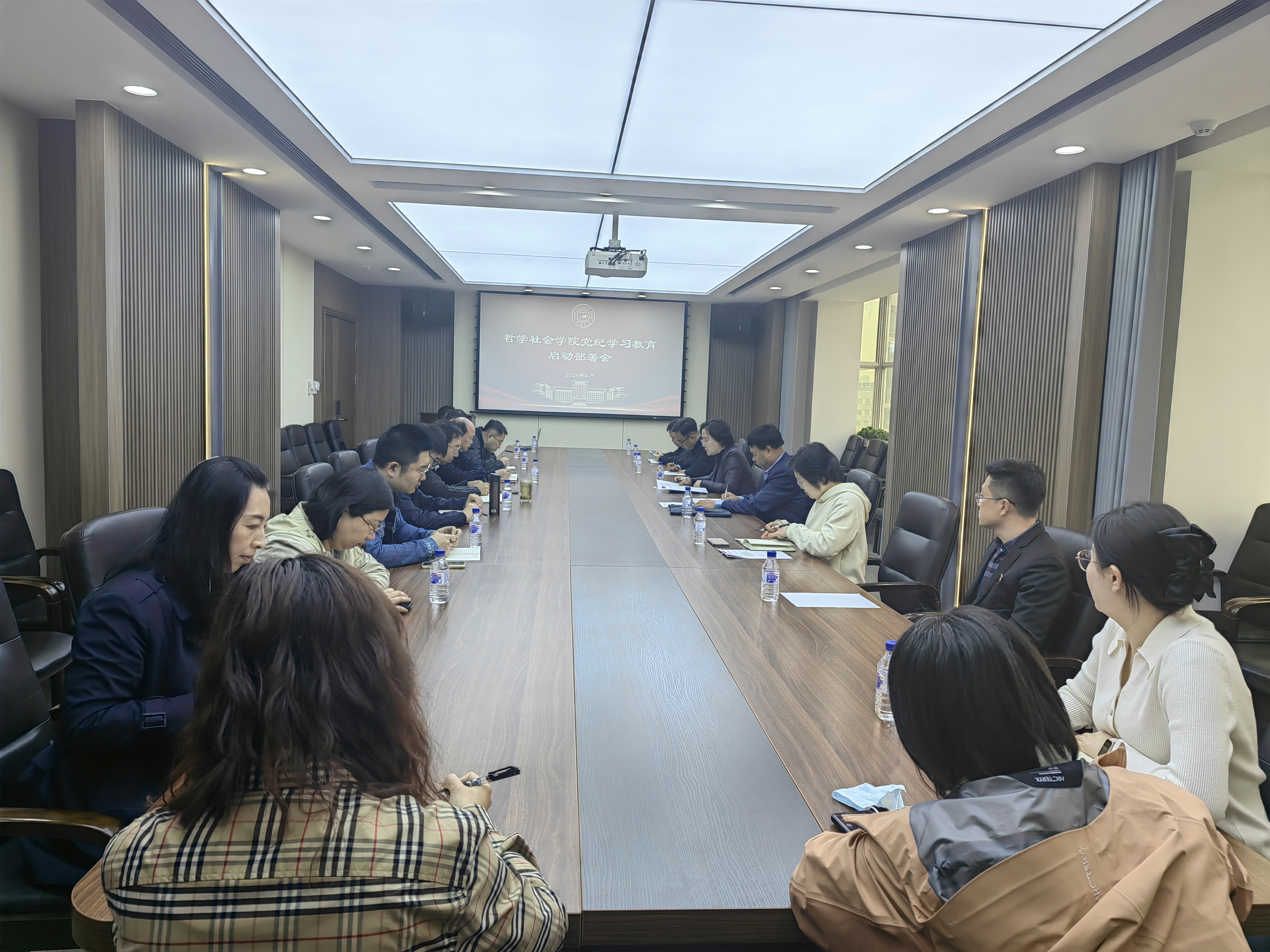 召开党纪学习教育启动部署会,全面启动部署学院党纪学习教育。会议由学院党委书记张晓萌主持。学院党委委员、纪委委员、支部书记和党办主任参会,学校党建联络员郭荣誉老师列席会议。
