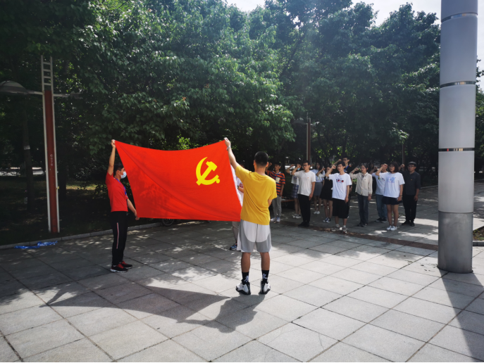 下午1点30分,十余名毕业生党员聚集在五月花广场的校歌碑下,举行庄重的党员宣誓仪式。党员同志们面对党旗而立,在赵明晗同志的领誓下,全体党员重温了入党誓词。洪亮、坚定的宣誓声在校园回荡,鲜红的党旗和金色的斧头镰刀图案唤起了同志们对中国共产党光荣和艰苦历史的回忆,激励着新时代的党员在新的时期担负起中国共产党人的初心和使命。