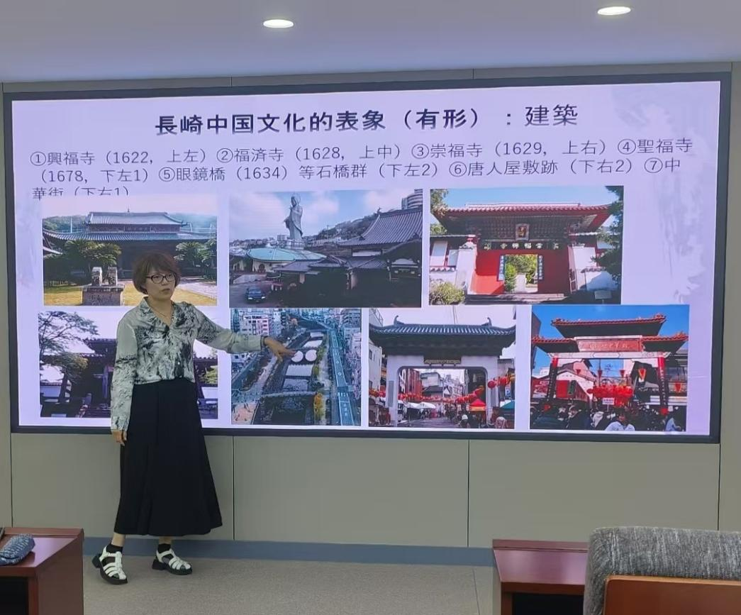 王维教授在讲座中以短片、影集辅助讲解,生动形象地介绍了日本长崎的和·华·兰文化,即日本大和民族文化、中华文化与荷兰文化。中华文化与荷兰文化通过商业贸易传入日本,三者碰撞产生了耀眼的火花,并在历史进程中不断融合、演变,形成了一系列全新的、独特的文化融合产物,包括宫日节龙舞、妈祖行列、舞狮、唐馆、新地中华街等等。