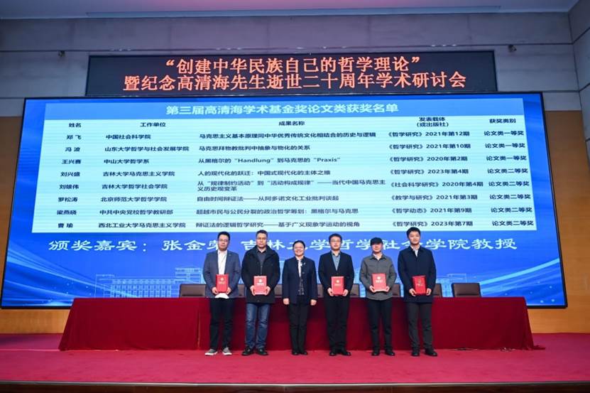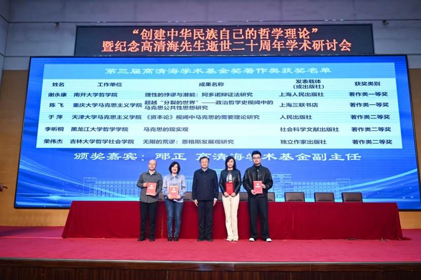 大会主题发言之后,高清海学术基金秘书长崔月琴主持第三届高清海学术基金奖颁奖仪式。