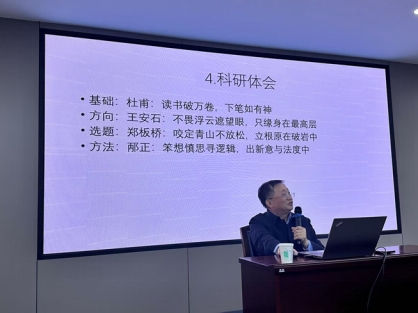 哲学专业中,这一批学生与高清海、舒炜光、邹化政等大师同行,向大师们学习精深苦读、笨想、有我、创新、包容和“治学为人,其道一也”的精神品格。然后,邴正教授结合自身的学术经历,介绍了不同阶段的学术研究重点和主要成绩,重点分享了自己的科研体会,特别提出在方法上要“笨想慎思寻逻辑,出新意于法度中”。最后,邴正教授结合自身的科研经历,总结宝贵的科研经验,与参会者分享。