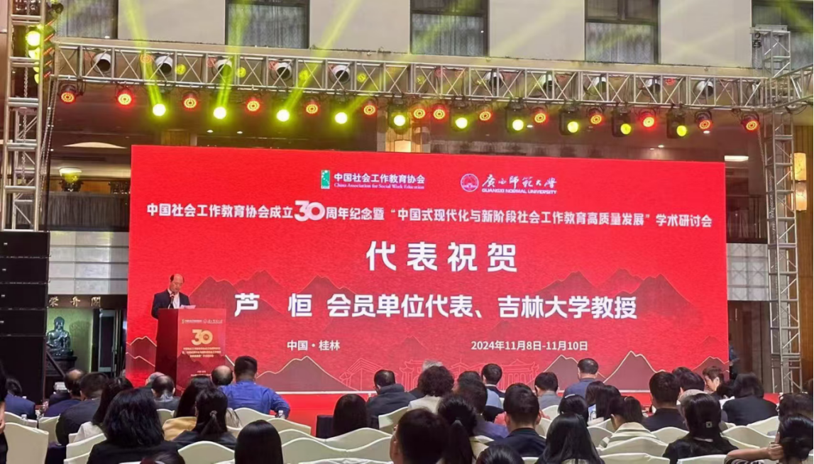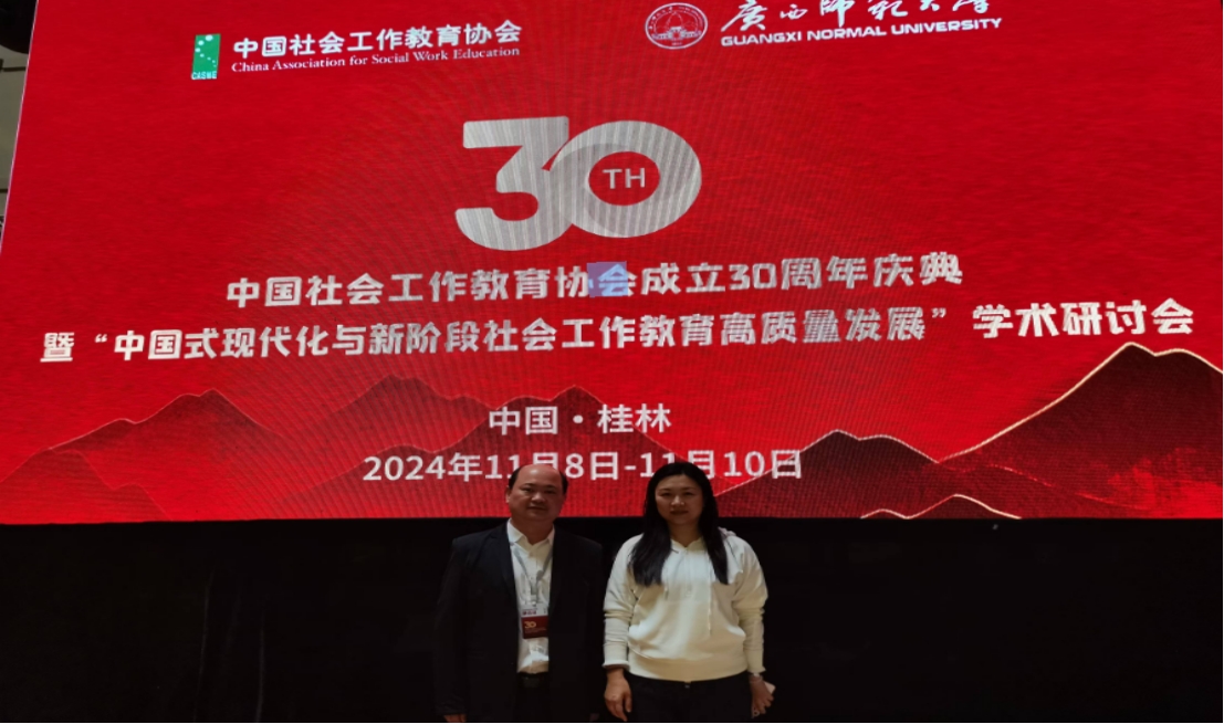 为深入学习贯彻习近平总书记推动新时代社会工作高质量发展的重要论述,11月9日,由中国社会工作教育协会主办、广西师范大学政治与公共管理学院承办的中国社会工作教育协会30周年庆典暨“中国式现代化与新阶段社会工作教育高质量发展”学术研讨会在广西桂林顺利召开。协会副秘书长、黄色视频社会学系芦恒教授,以及张竞月副教授参加此次活动。