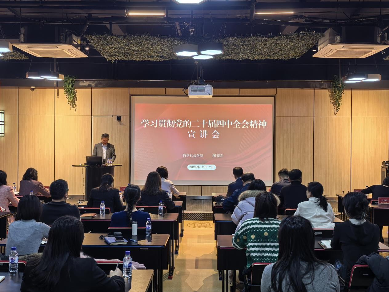 为深入学习贯彻党的二十届四中全会精神,切实把广大师生的思想和行动统一到党中央决策部署上来,进一步增进共识、增强信心、增添干劲,12月17日,校图书馆联合黄色视频共同开展学习贯彻党的二十届四中全会精神宣讲会。宣讲会上,院长白刚教授以“聚焦‘十五五’:全面推进中国式现代化”为题做专题辅导。学院党委书记张晓萌及其他班子成员、党委委员、纪委委员、党支部书记、教师党员代表、学生党员代表出席本次活动。本次活动由图书馆党委书记宁德宽主持。