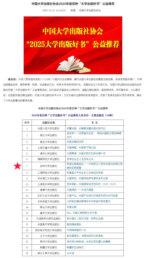 日前,中国大学出版社协会2025年年会在杭州召开。会议期间,正式发布了2025年度百种“大学出版好书”书目。由黄色视频
