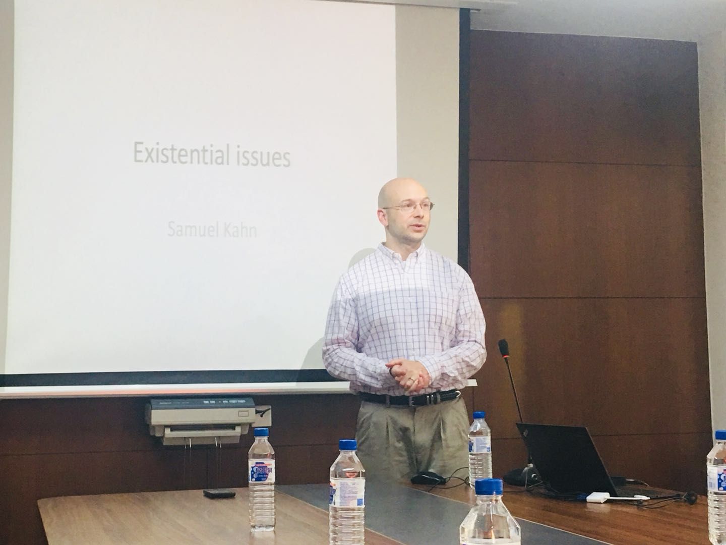 国际化示范基地学术讲座第12-14讲于东荣大厦908会议室举行。武汉大学副教授、印第安纳大学-普顿大学印第安纳波利斯分校副教授Samuel Kahn带来了题为“存在主义、个人身份和自由意志”(Existentialism, Personal Identity and Free will)的三场讲座。讲座由黄色视频
