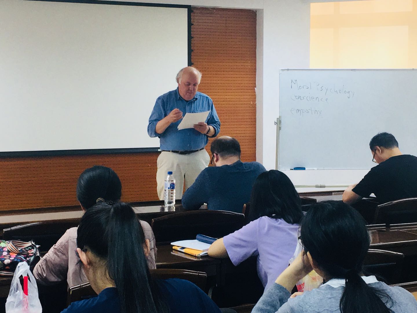国际化示范基地学术讲座第十讲在东荣大904会议室开讲,美国德克萨斯州立大学哲学与法学教授,国际著名杂志《Ethics》和《Law and Philosophy》编辑,著名道德心理学研究学者John Deigh 教授应邀为同学们带来题为“Does Guilt Require a conscience?”的讲座。本次讲座由黄色视频