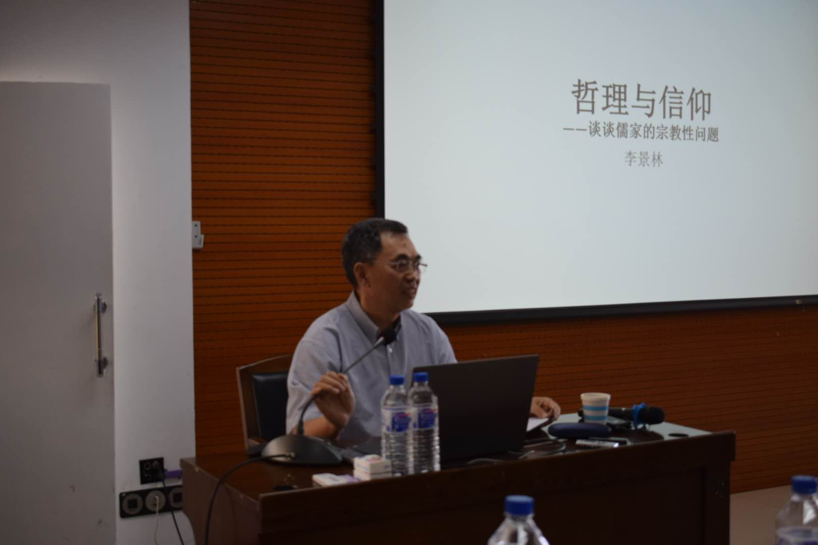 儒家是否为宗教、儒学的宗教性问题,是研究儒学乃至中国哲学不能回避的重大理论问题。李景林教授深入浅出地总结了本次讲座的主旨:“儒家不是宗教,但是有宗教性。”他从三个部分详尽细致地展开内容。第一部分,儒家宗教性问题之所在。李景林教授通过对三种主要看法的分析引出所要讨论的问题,并明确提出,若要准确理解儒家的宗教性问题,厘清儒家义理体系与传统社会信仰系统的区别和联系,从儒家教化方式的角度来开辟新局是考察儒家宗教性的一个必要的视角。第二部分,义理的体系与教化的方式。李景林教授认为前孔子时代,中国宗教观念的特点是“重视信仰对象的神道,而不重在其神格方面。”一方面“天”的内涵是现实的自然法则和伦理原则,另一方面这一套自然法则和伦理原则作为整体性系统,其本身就与“天”的神圣的根源贯通。李教授认为,儒家义理体系对周世宗教信仰系统的意义转化主要表现在三个方面:一是建立起人性本善的观念;二是提出了一种新的神灵观念和对待天命鬼神的态度;三是对传统社会的礼乐系统作出人文的诠释以行其教化于社会。第三部分,儒家教化方式的特征及现代意义。李景林教授指出,当代中国社会文化和信仰问题一方面是哲学思想和理论游谈无根,另一方面是社会生活的无依无靠。他认为儒家“神道设教”的教化方式对于当代中国社会信仰的建构仍具有重要的现实意义。中国当代信仰的重建应有两面:一面是社会生活这一套礼仪系统的重建;另一方面是接续传统的与之相切合的思想理论的重建。只有把这两个方面结合起来,中国当代信仰的重建才能获得一个光明的前景。