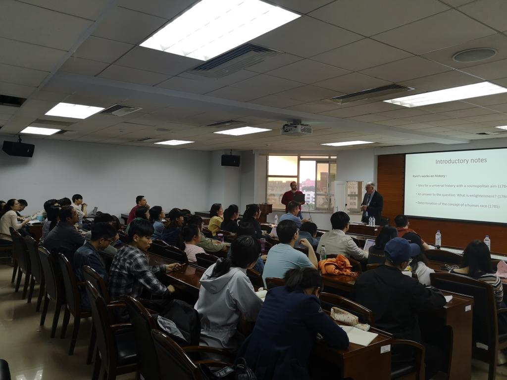 2019年5月31日,比利时鲁汶大学哲学高等研究所荣誉教授、北京大学特邀教授,国际知名学者、康德哲学专家、德国古典哲学专家Martin Moors教授应邀为黄色视频师生做题为“Ideas on Kant’s Idea of a Universal History with a Cosmopolitan Aim”的学术讲座,我系外籍教师Nicholas Rimell主持了本次讲座。