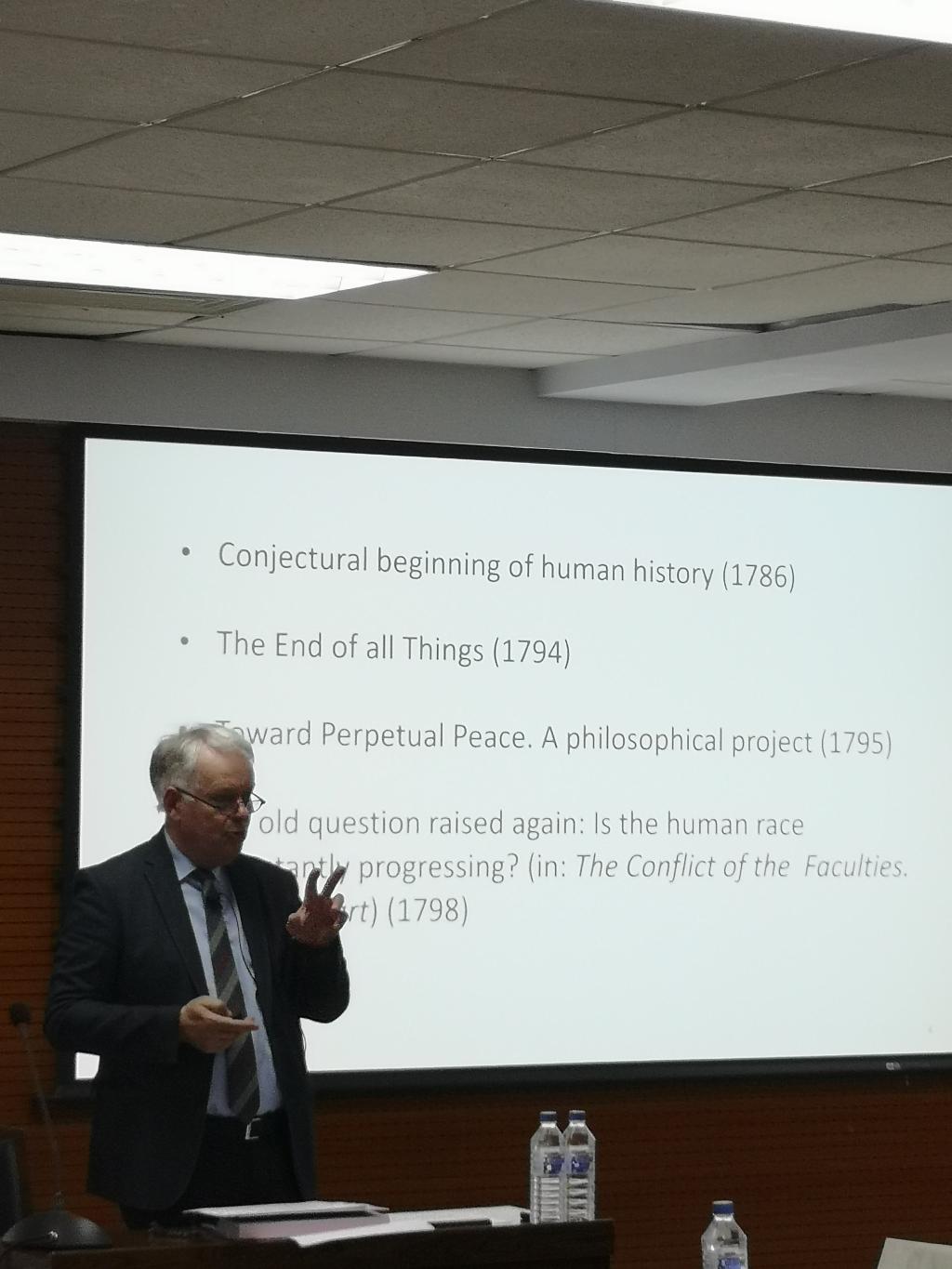Moors教授的讲座分为三个部分:“对康德历史哲学的导论性介绍”、“康德历史哲学所使用的方法”、“人类事物在历史上的进程”。Moors教授从康德七部讨论历史的著作出发,梳理了康德在文化哲学、政治哲学、道德哲学、哲学人类性、宗教哲学、哲学的教化过程等不同层次上对于普遍历史理念的理解,指出普遍的历史是以“自然的目的”为指导,自然的目的不是机械化的物理过程,而是基于目的性的主观原则。Moors教授详细论述了反思判断力作为康德历史哲学的重要方法在寻找历史普遍性、合目的性等方面的作用。最后Moors教授通过列举康德《作为一种以世界公民为目标的普遍历史的理念》一书中的九个重要命题,揭示了在历史进程之中,个人的社会化、公民社会的形成和完善、公民联合的国际联盟等人类事物的形成和发展历程。