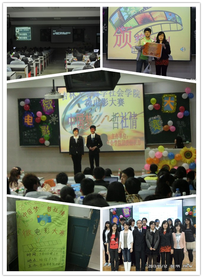 报》、《吉大青年》、校园人人网等对活动进行了跟踪报道。大赛现场的收获、台前幕后的奋斗,微电影为我们的青春年华留下了弥足珍贵的美好回忆。本次活动不仅丰富了同学们的校园文化生活,提高了哲社青年学生的凝聚力与创造力,更加激励着青年学生们在青春的旅程中树立正确的理想信念,为梦想勇敢拼搏!铭记哲社情,共筑中国梦!