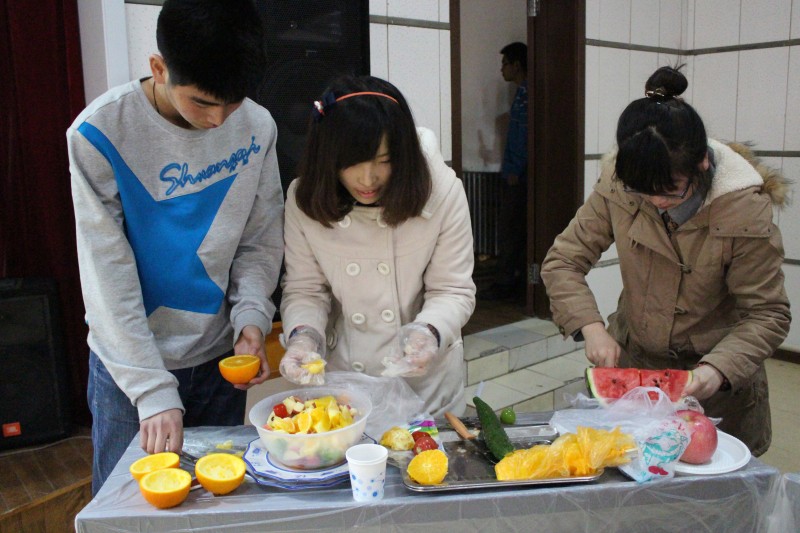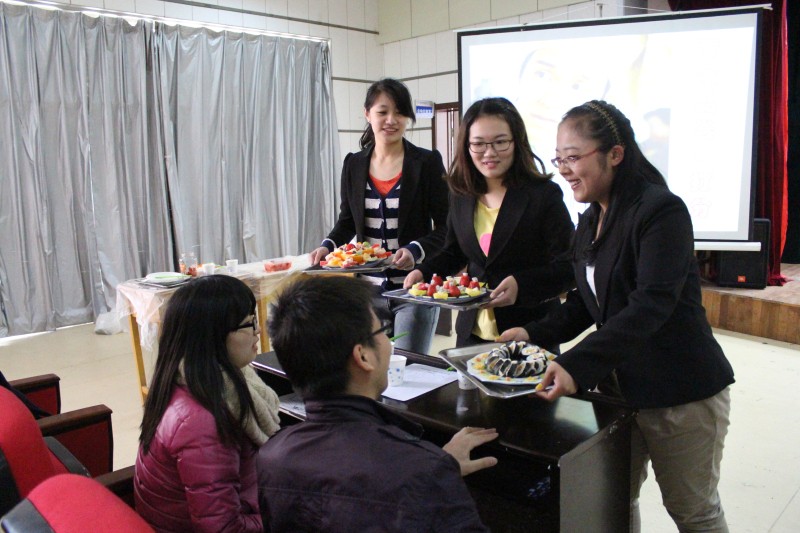 一首精彩的开场舞拉开了本次美食大赛的序幕。比赛分两个环节进行,第一环节是“美食美型比拼”,着重菜品外观之美型;而作为第二环节的“美食美味大比拼”则更强调菜品内在之美味。本次美食大赛出于安全考虑,禁止同学们使用明火,但这丝毫不影响各参赛选手的比赛热情,选手们在赛上使出了“十八般厨艺”。比赛同时,各班亲友团也在舞台上用自己优美的歌声为选手们助威。接下来的“找你妹”和“爱的抱抱”游戏环节,拉近了同学们之间的距离,使现场气氛更加热烈。游戏过后,万众期待的美食终于“新鲜出炉”,评审团及大众评委们认真品尝同学们的美食成果,并进行慎重投票。利用统计票数结果的时间,主持人通过知识问答游戏的形式向大家传播了饮食文化知识。最后,社会工作班以一票险胜劳动与社会保障班,夺得桂冠,到此美食大赛圆满落幕。