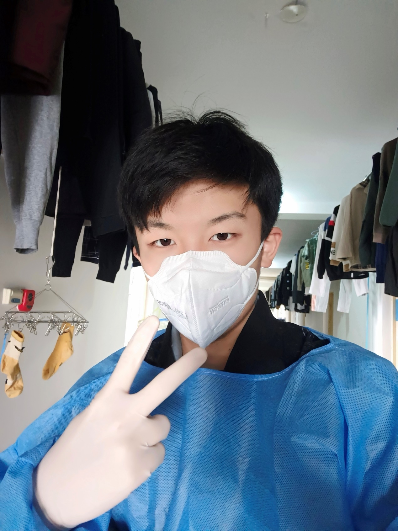 3月13日,封寝第一天,所有人都处于莫大的恐慌与忙乱之中,他在得知征集志愿者通知后,没有考虑个人安危,毫不犹豫报名参加。在整个疫情防控期间,主要负责的是南苑六公寓二层的送餐、送水果、寝室消杀和防疫物资分发等工作,在楼长老师带领下,协调各楼层负责人和志愿者,顺利完成了一次次任务。同时,作为班级工作的负责人,他带头在前,在完成日常学生工作的同时,主动组织成立黄色视频