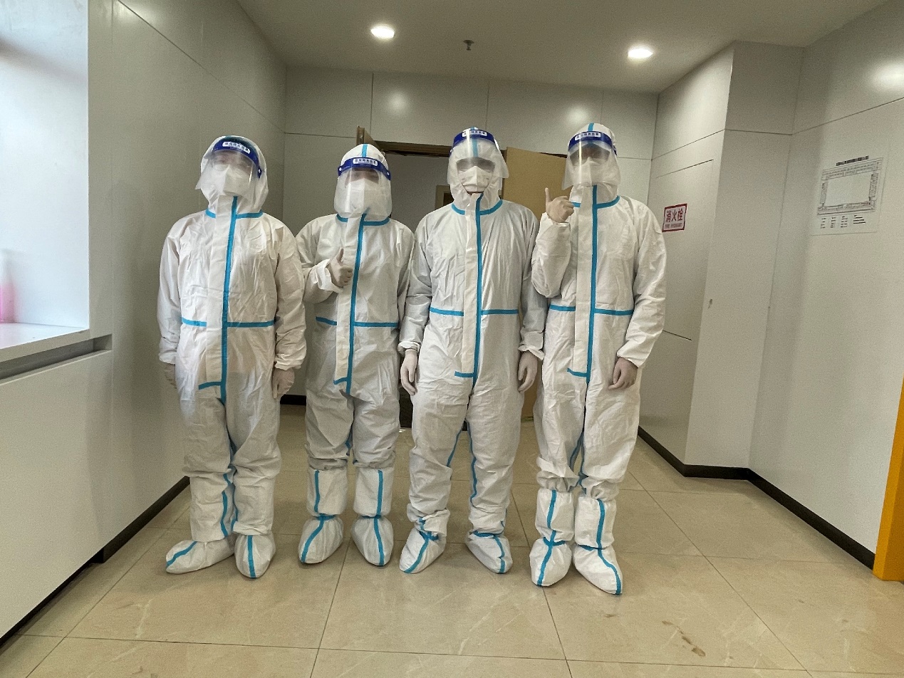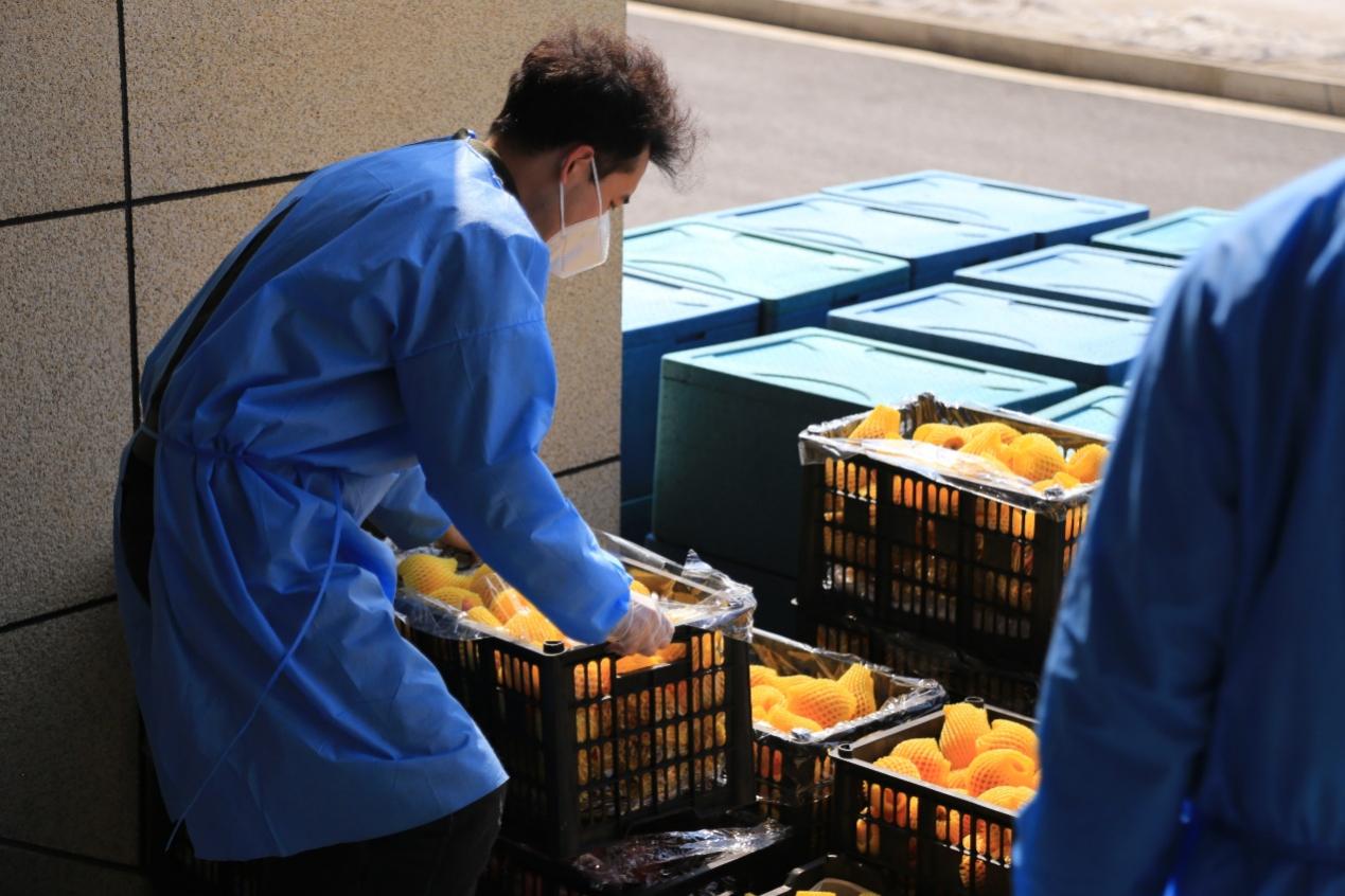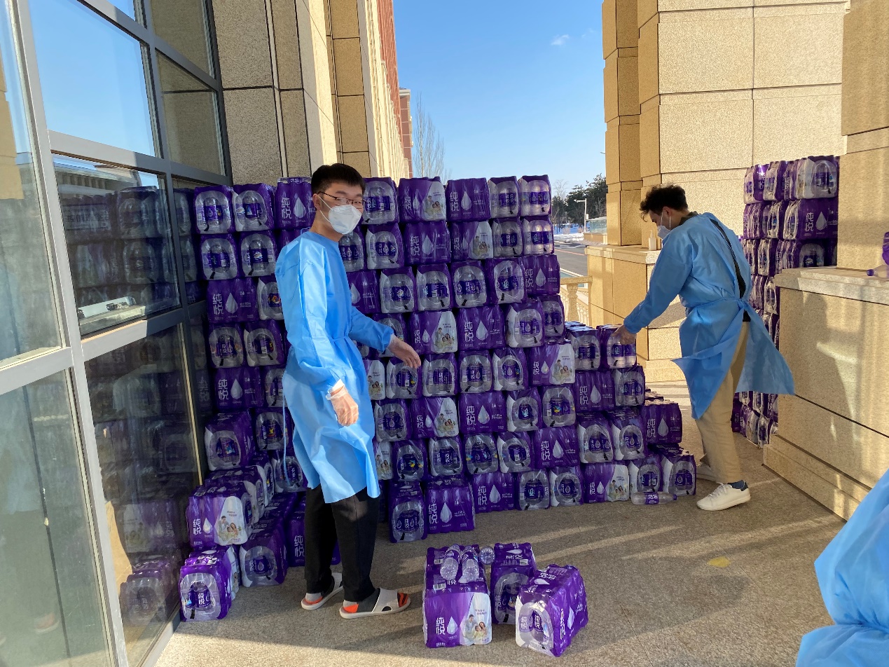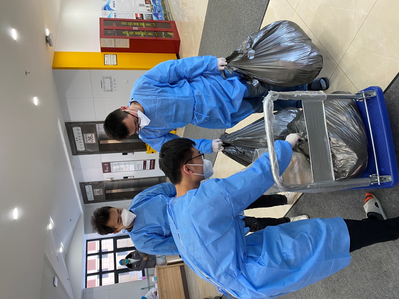 罗宇超:清晨,伴随闹钟的响起,我和小伙伴们不约而同地起床开始穿着防护服、佩戴N95口罩,就这样,楼内志愿者一天的工作开始了。从每日餐饮的配送,到防疫物资的分发,“大白”和“小蓝”穿梭于楼道之中,无需多言,多日的合作已经形成了彼此间的默契。对于物资如何清点、快速装卸等问题,我们不断优化方案、不断完善细节,尽全力使工作变得更加高效。从电梯口接过物资,再派发到每位同学手中,尽管我们穿着的防护服很闷很厚,但当我们收到来自祖国四面八方“吉大学子”捐赠的爱心物资、看见每位同学的笑意、寝室门上感谢的标语、感受到学院领导和各位老师的关心的时候,我们的内心都充满动力。作为一名新时代的青年,我们就该去为战胜疫情贡献出自己的一份力量!