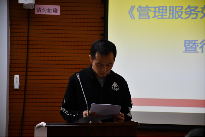 会议第二项,与会人员进行工作经验分享。首先,由学院党委办公室主任张洁老师上台发言。张老师以亲身经历作为切入点,向与会人员介绍自己的党务工作经验,表达了对于以后工作的预期目标。随后,学院行政办公室主任于海天介绍了自己的工作秘诀:以院为家、全心全意,以饱满的热情和踏实的态度投入工作,保质保量地完成各项工作。