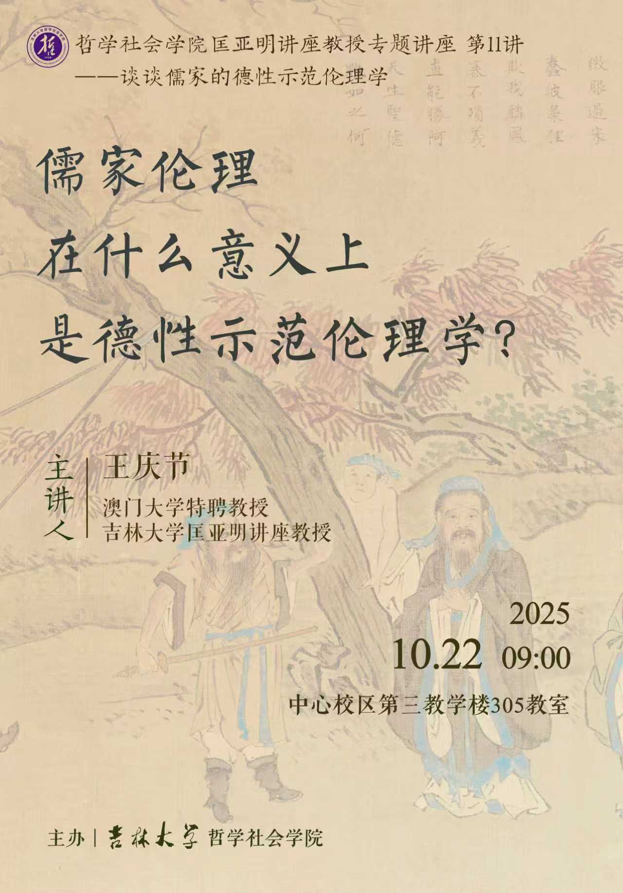 【黄色视频 匡亚明讲座教授专题讲座第9-11讲】王庆节: 谈谈儒家的德性示范伦理学