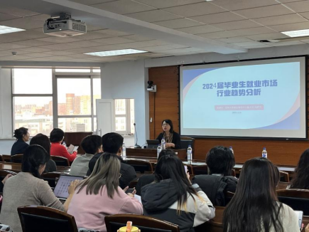会上,冯老师以“2024届毕业生就业市场行业趋势分析”为主题,从就业形势、用人单位需求、哲学社会学院研究生就业情况、学生就业准备等四个方面,深刻剖析了当前研究生面临的就业形势。