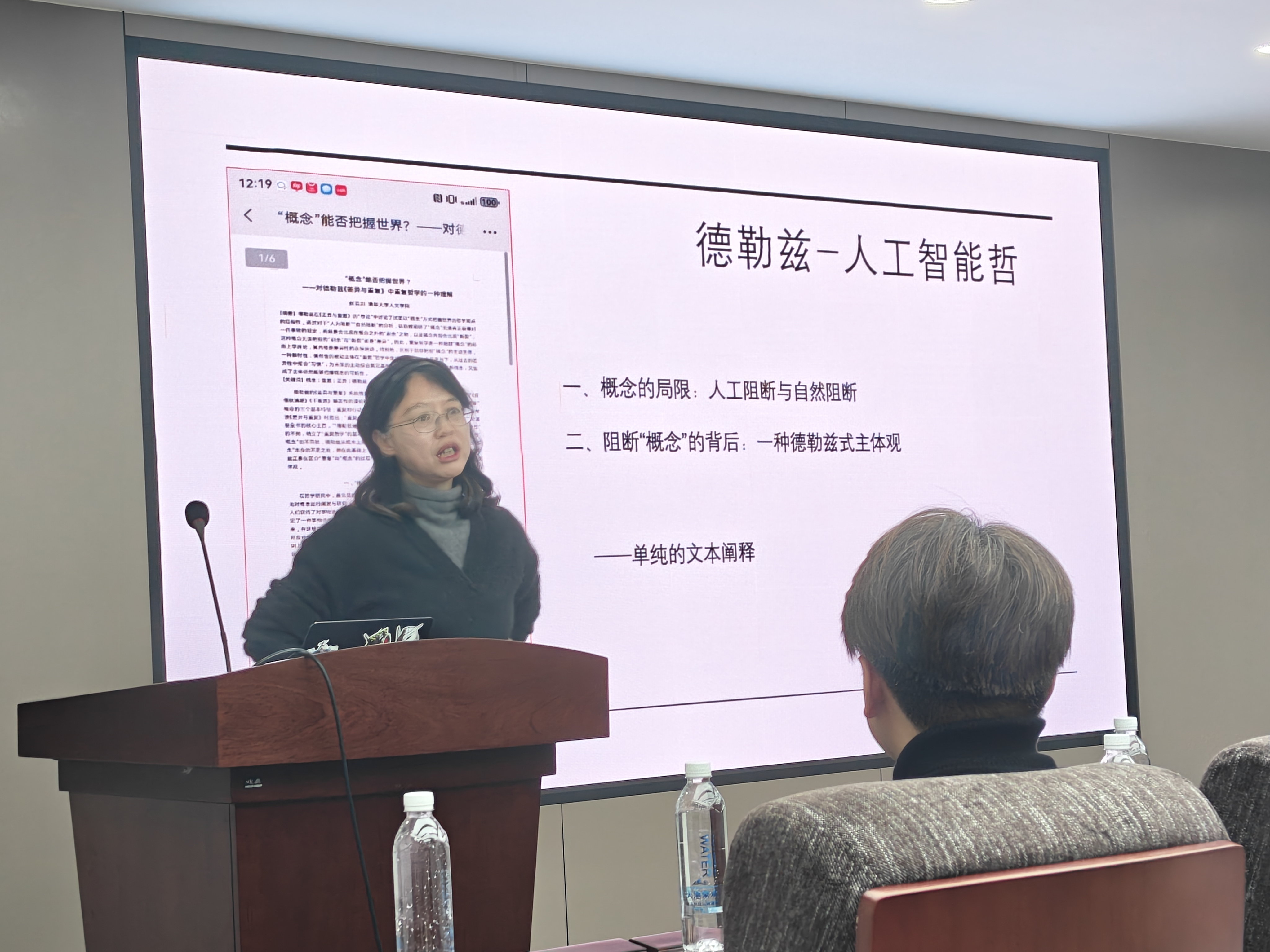 接下来,夏莹教授对两位学生的论文写作和修改历程作了简要的总结。夏莹教授指出,赵竞川的论文从初稿到现在经过了多次修改,正是在这些探索中我们逐渐理清了线索。有材料表明,和大语言模型相比,世界模型强调对世界的交互性认知,具有发展具身智能的潜力。显然基于世界模型的智能和基于大语言模型的智能是不同的。以往学界关于人工智能理解力的争论,都是关于大语言模型人工智能理解力的争论,其最终的结果也只能是囿于人类中心主义的思路。而世界模型的人工智能(agent)对具身智能和交互性认知的发展,将表明人工智能的理解力很可能和学界通常认为的人类中心主义式的理解力有所不同。德勒兹关于概念和主体的思想,则能为理解这种人工智能(agent)提供一种范式。