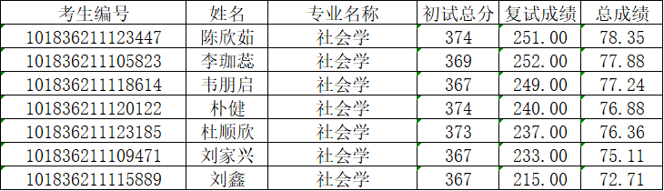 2.社会学:陈欣茹、李珈蕊、韦朋启、朴健、杜顺欣、刘家兴、刘鑫