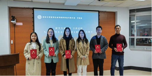 研究生会主席团成员为刘浩宇、许程程、杨鹤松;2022届学生团委团委副书记为仵逸鋆。