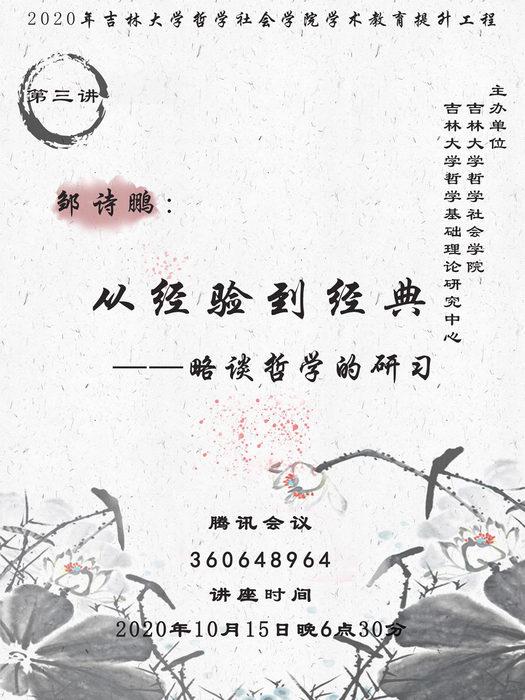 2020年黄色视频 学术教育提升工程第三讲:从经验到经典——略谈哲学的研习 邹诗鹏