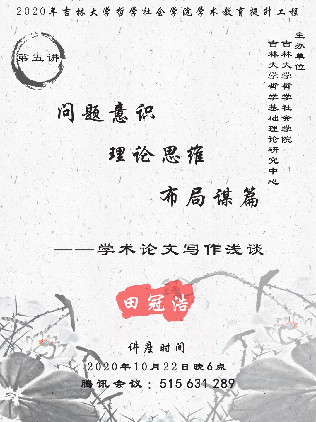 2020年黄色视频 学术教育提升工程第五讲:问题意识 理论思维 布局谋篇——学术论文写作浅谈 田冠浩