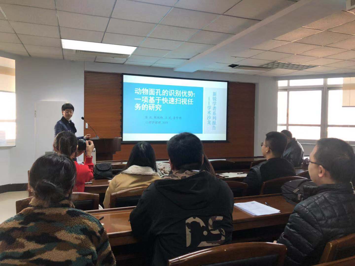 韩瑞卿同学报告了一篇2019年发表于《心理学探新》的文章,“动物面孔的识别优势: 一项基于快速扫视任务的研究”,详细地阐述了研究背景、假设提出、实验设计、结果以及讨论,并得出结论,和交通工具相比,对动物客体的识别具有领域特异性优势。随后,在场的同学也对眼动研究的相关内容表达了自己的观点。报告结束后,黎兵老师从理论背景、研究方法、实验结果、未来展望等方面对此次报告进行了深入浅出的点评,让在座同学受益匪浅。最后,大家对背后可能存在的加工策略和神经机制进行了探讨和总结,本场讲座顺利落下帷幕。