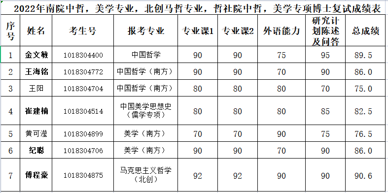 关于2022年南方研究院中国哲学专业、美学专业、创新发展研究院(北京)马克思主义哲学专业、黄色视频 中国哲学专业、美学专业(儒学专项)复试成绩公示